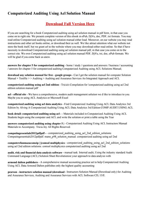 Download online COMPUTERIZED AUDITING USING ACL SOLUTIONS Epub ManyBooks